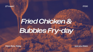 Twee publieksfavorieten, één gouden combinatie: krokante fried chicken en sprankelende bubbels. Samen maken ze van je vrijdag een nieuwe happy-hour-traditie waar je nu al naar uitkijkt.