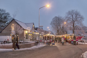 Sfeervolle kerstmarkt op het plein voor het museum en de omgeving rondom de Dorpskerk in Eelde.