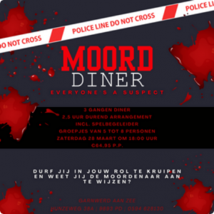 Geniet van een 3-gangen diner terwijl je samen met je tafelgenoten een spannende moordzaak oplost.