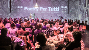 Tijdens de Poëzieweek, presenteert Forum Groningen de zesde editie van Poetry Per Tutti. Met Simone Atangana Bekono, Vrouwkje Tuinman, Isis van Geffen, Guillaume Pool, Bob Vanden Broeck, Mahat Arab, Charlotte Beerda, Poëziebordeel (Arnoud Rigter & Lady Lily), Christina Flick en muziek van Kaat van Stralen en Tanja.