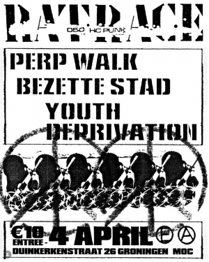 Hardcore punk. Met Perp Walk (Uk), Bezette Stad (Be), Youth Deprivation (Gro).