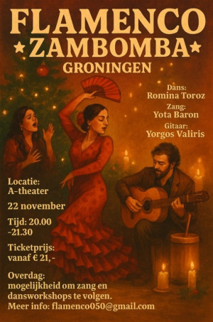 De Zambomba is een show vol flamencodans, zang, muziek en flamencoritmes met een kersthema, gericht op de winter en het samen zingen. Overdag mogelijkheid om zang en dans workshops te volgen.