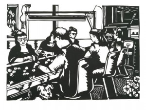 Een knipsel in zwart papier in een lijst van 40 x 50 cm, uit 2023. Bloembollen en Nederland horen bij elkaar. Dat begon in de 17e eeuw met de tulpenbollenmanie. De bloembollenteelt werd groot aan het eind van de 19e eeuw in wat de bollenstreek zou gaan heten rondom Lisse en Hillegom. Een onderdeel van de bollenteelt is het bollen pellen. De bollen komen uit de grond en worden ontdaan van plantresten, babybolletjes en aarde. Gedeeltelijk gebeurt dat machinaal, maar nog altijd is een deel handwerk. Lange tijd was het een geliefd zomervakantiebaantje voor de schooljeugd. De bollenpeltijd valt namelijk in juli en augustus en je kon er goed geld mee verdienen. Nog steeds pellen jongeren bollen, maar zij worden tegenwoordig vaak aangevuld door arbeidsmigranten uit Oost-Europa en nog verder weg. Bollen pellen verbroedert, juist omdat het eentonig zwoegen is in een hete schuur. Dan moet je het hebben van een beetje gezelligheid. Dat die zomerse bollen in oktober de grond in gaan en volgend voorjaar gaan bloeien dat is nog ver weg, nog bijna verder weg dan de die zinderende zomerhitte in de grauwe januarim