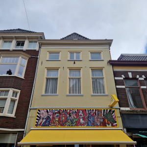 De kleurrijke gevel van Metamorphose gemaakt door Lieuwe van Gogh nodigt uit tot meer. In de shop is op dit moment een expositie te zien met diverse kleurrijke werken van dieren.