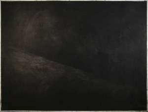 Jeffrey Linker (1984, Tolbert) maakt zwart-witte tekeningen in houtskool en wit krijt. Zijn werk gaat over licht, donker en ruimte. Houtskool biedt hem een grote vrijheid en hij kan er een effect van fluweel en gelaagde diepte mee scheppen. Wat eerst leeg lijkt, blijkt bij langer kijken vol nuance. ‘Als je went aan de afwezigheid van licht, ga je steeds meer ontdekken in het donker.’