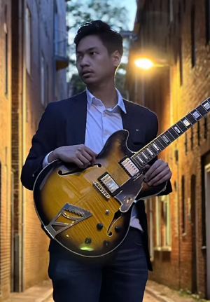 Live muziek met recent afgestudeerde jazzgitarist Hanif Abdurrahman Aziz.