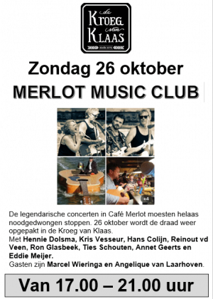 De legendarische concerten in Café Merlot moesten helaas stoppen. De draad wordt weer opgepakt in de Kroeg van Klaas.