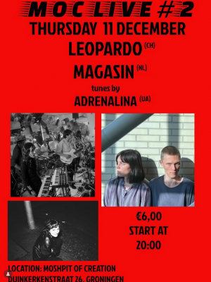 Leopardo (ch) + Magasin (nl) live en Adrenalina draait liedjes.
