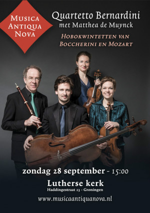Luigi Boccherini is nu misschien een wat minder bekende componist, maar in zijn eigen tijd eind achttiende eeuw was hij zeer populair met zijn originele aantrekkelijke composities. Om zijn hobokwintetten uit te voeren is het Quartetto Bernardini zeer zeker de aangewezen partij. Alfredo Bernardini beheerst zijn instrumenten met verbluffend zelfvertrouwen en speels gemak en komt dicht bij de menselijke stem. Met zijn dochter, de ‘ster’ barokvioliste Cecilia Bernardini, Simone von Rahden op altviool en Marcus van den Munckhof op cello aangevuld met Matthea de Muynck viool vormen ze een ideale combinatie.