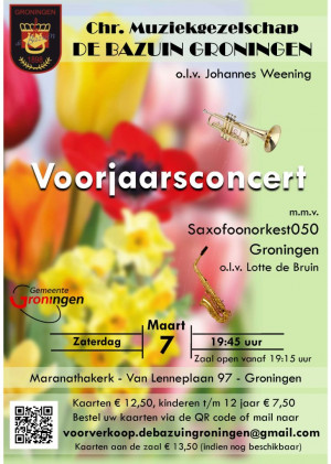 Christelijk Muziekgezelschap De Bazuin en Saxofoonorkest050 verzorgen samen een gevarieerd programma.
