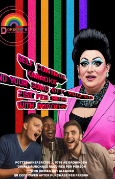 Dorothy's Karaoke Fun – een avond vol zang, plezier en gelach, gepresenteerd door Dorothy Male zelf. Gratis toegang bij aankoop van drankjes.