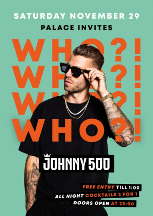 Maak je klaar voor een avond vol energie, beats en party vibes! Niemand minder dan Johnny 500 brengt zijn killer tunes naar Palace. Van bootybeats tot de heetste R&B, House en HipHop: dit wordt een nacht die je niet wilt missen. Met zijn unieke skills en charismatische uitstraling weet Johnny 500 elk publiek in beweging te krijgen. Zijn moderne, veelzijdige sound en ongeƫvenaarde party vibes maken hem een absolute favoriet op dansvloeren over de hele wereld!
