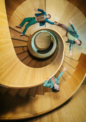 Hou Vast is een absurde, acrobatische voorstelling van Het Houten Huis en DeRonde/Deroo. Twee acrobaten en een muzikant verbeelden met hun lichamen en (lijf)muziek de balans tussen vasthouden en loslaten.